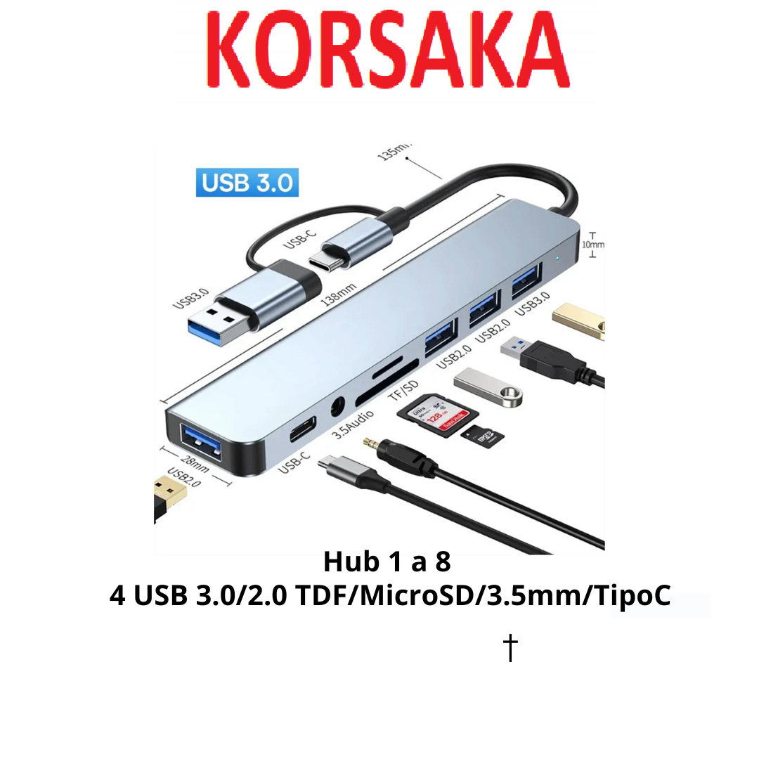 Hub Tipo C y USB a 4 USB 3.0/2.0 TDF/MicroSD/3.5mm/TipoC Aluminio
